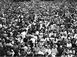 In thinking about the challenge of overcoming cultural barriers at the concerts, I often remember this archival photo from 1935, the year the Festival was born. First, here’s a small snippet of the crowd gathered at the Festival’s original band shell in the south end of Grant Park during the Great Depression: